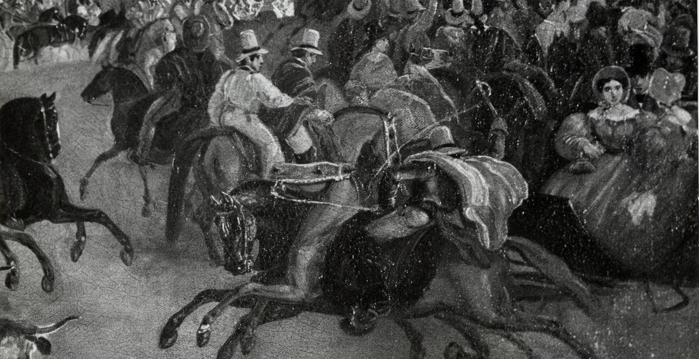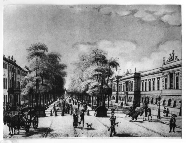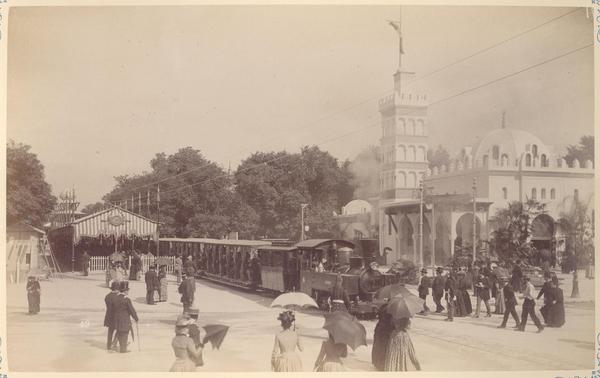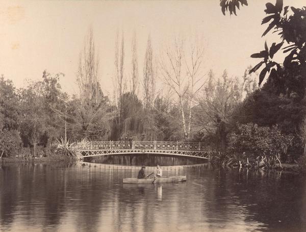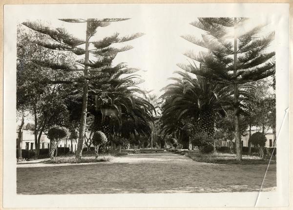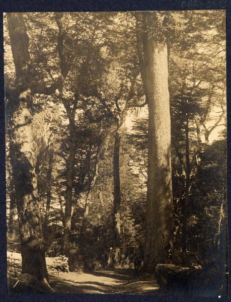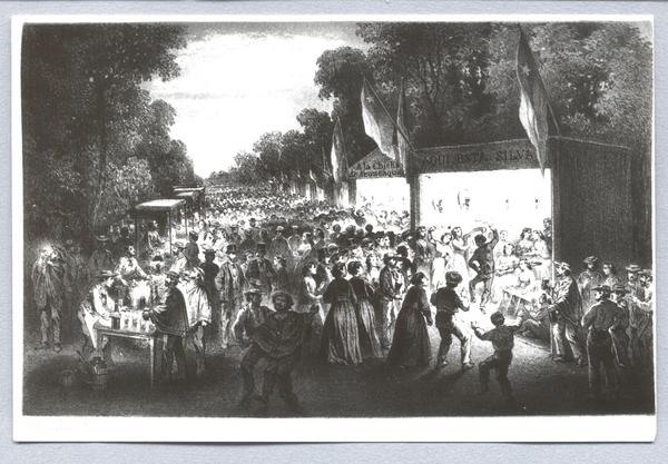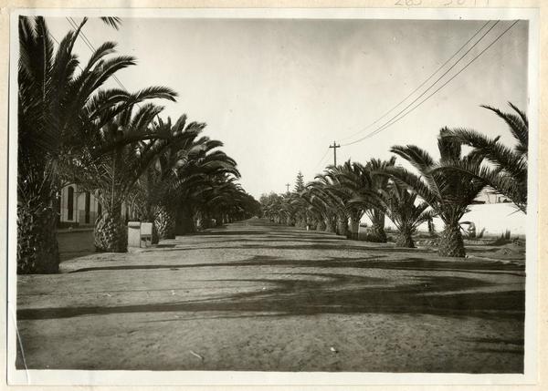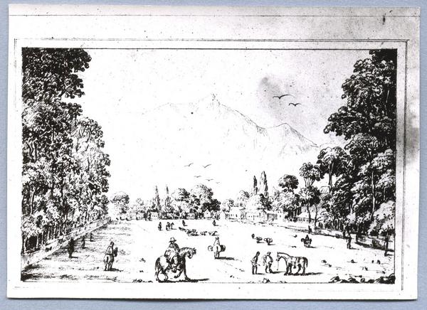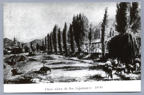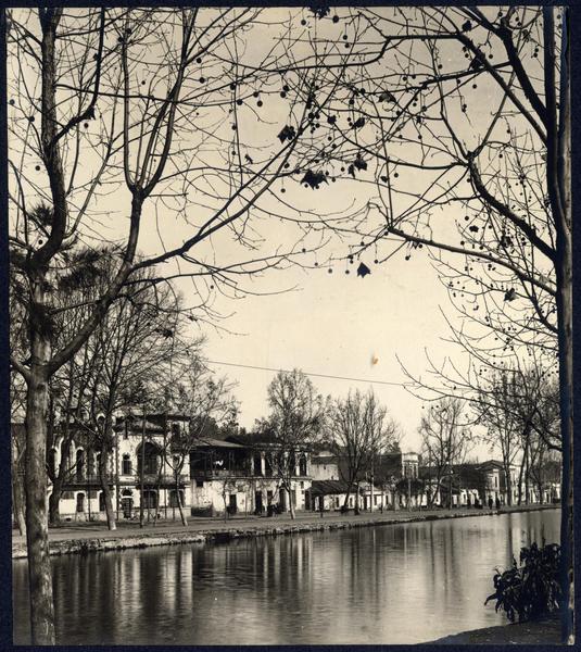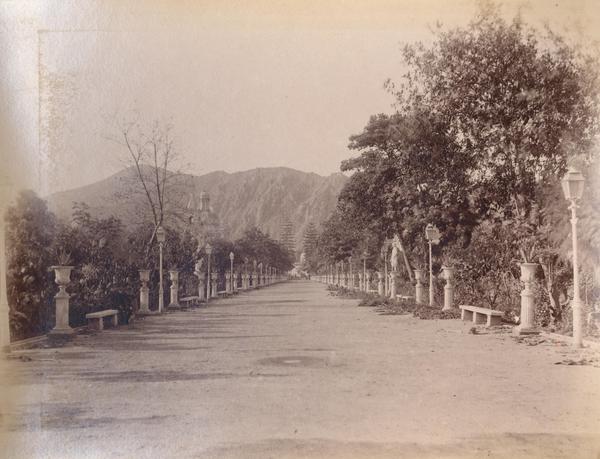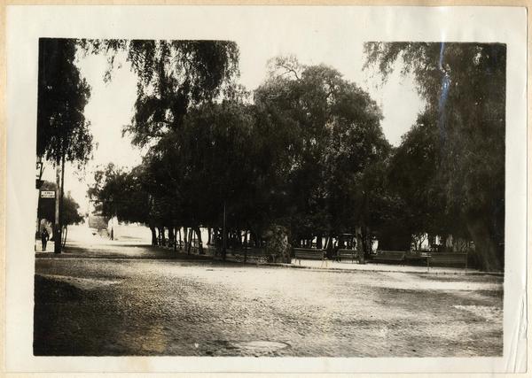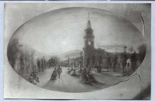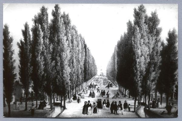 [Alameda de las Delicias : perspectiva de una calle con árboles y personas, actualmente es la Avenida Libertador General Bernardo O'Higgins] [fotografía].