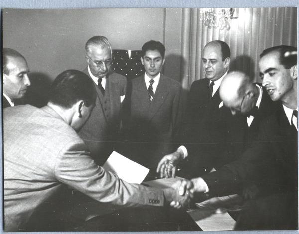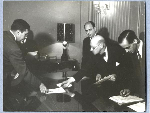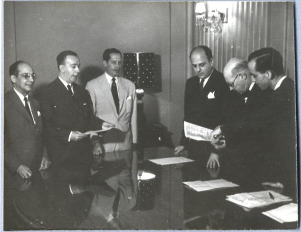 [Agustín Edwards al centro derecho, y Luis Arteaga García entre otros] [fotografía].