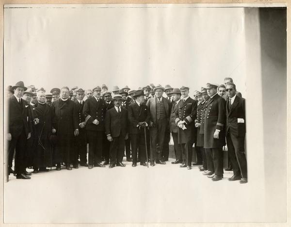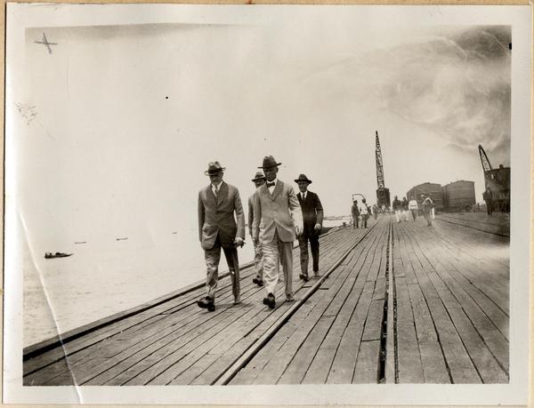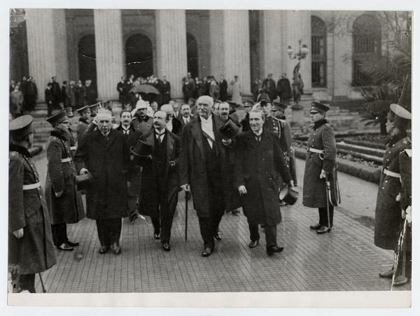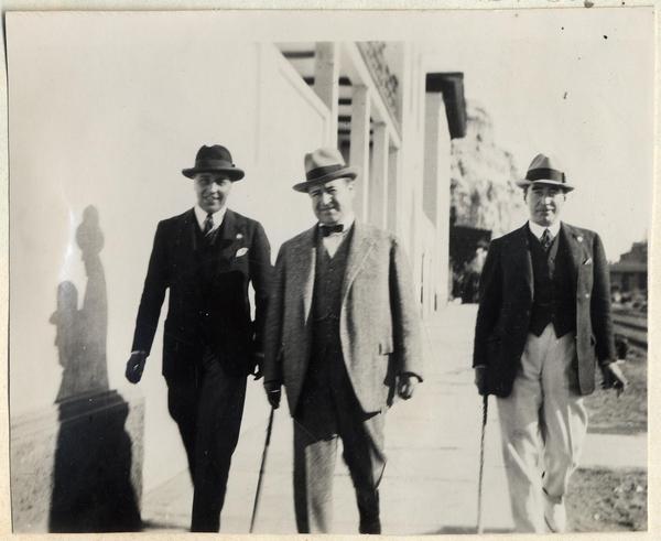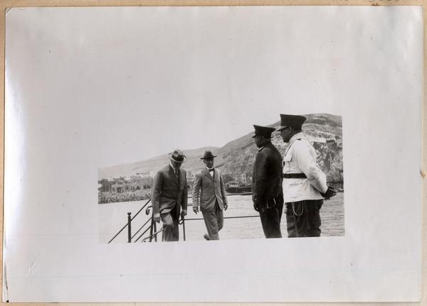 [Agustín Edwards, Pershing y Lassiter en dirección al muelle en donde se embarcó Pershing de regreso a A E. U.] [fotografía]