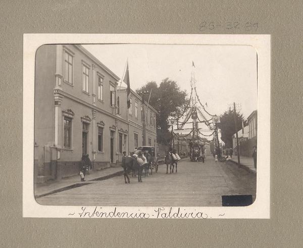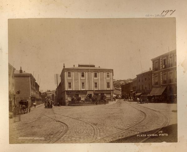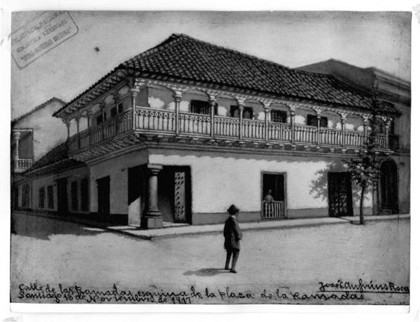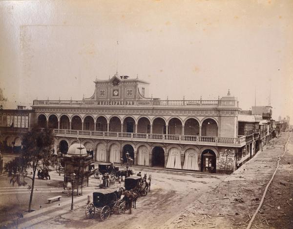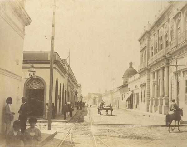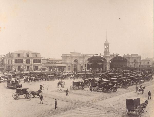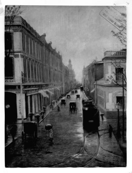 [Alameda de las Delicias (hoy B. O'Higgins) frente a la calle Claras (hoy Mac Iver) en el año 1906] [fotografía].