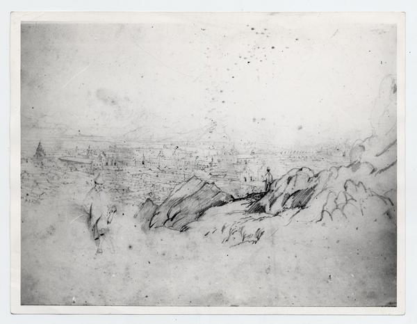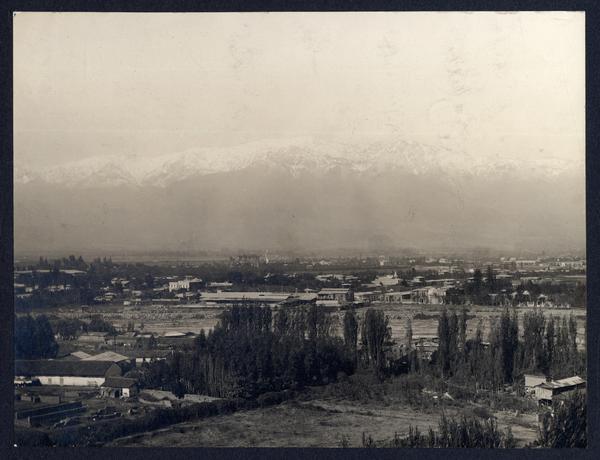[Vista panorámica de Santiago. Desde el Llano de Maipo al colegio de los Agustinos] [fotografía].