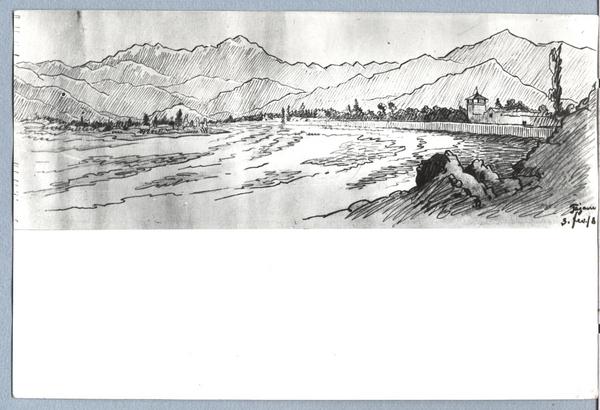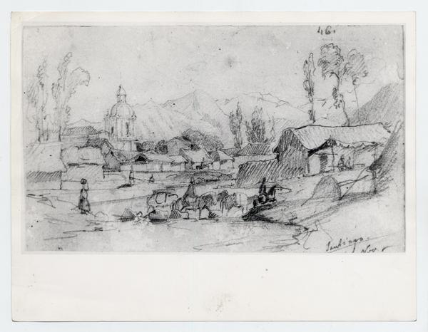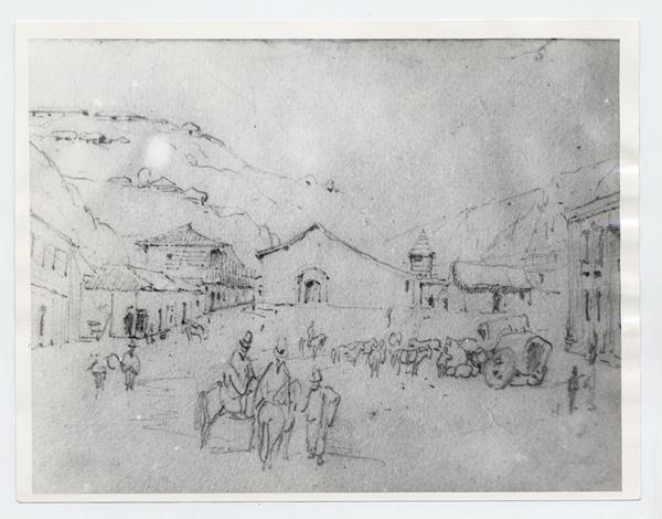[Vista panorámica de Santiago. Arrabal de La Cañada, dibujo] [fotografía].