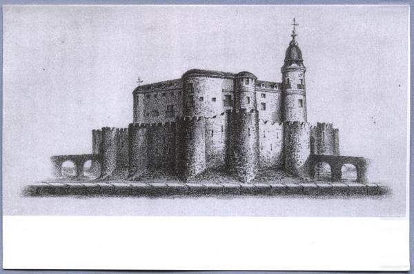 [Vista parcial de la Catedral de Bergen, Noruega] [fotografía] Photografi AF M. Selmer.