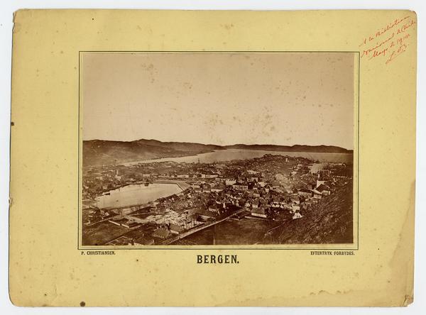 [Vista panorámica de la ciudad y puerto de Bergen, Noruega] [fotografía] P. Christiansen.