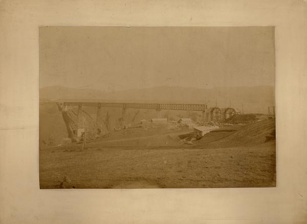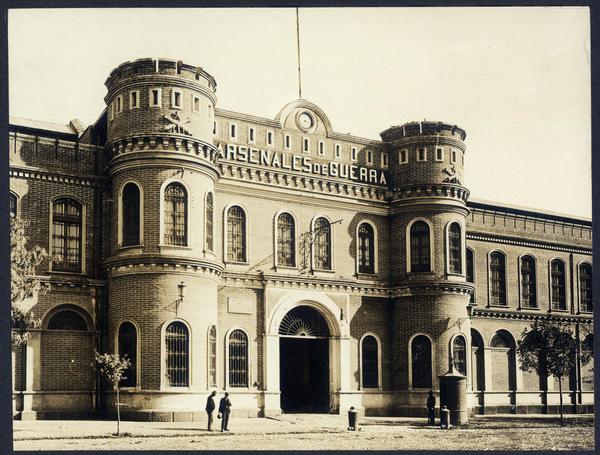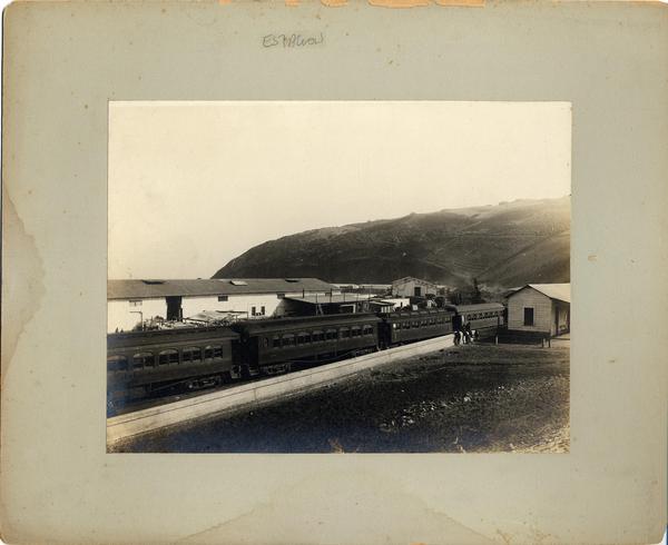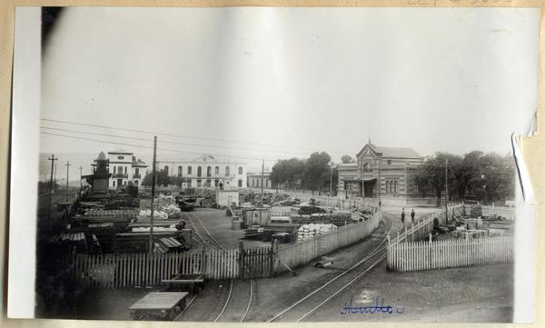 [Vista general de una Estación de Ferrocarriles del Estado y maestranza] [fotografía].