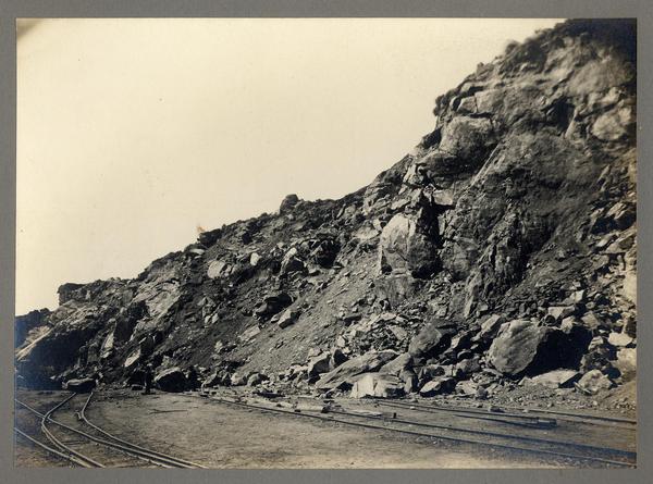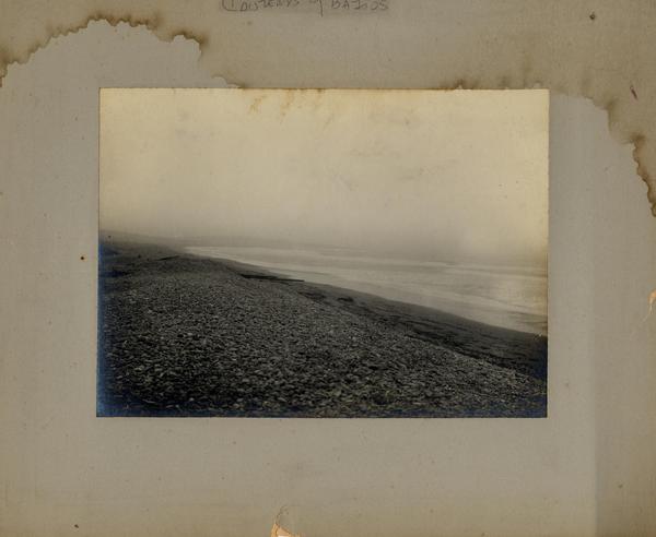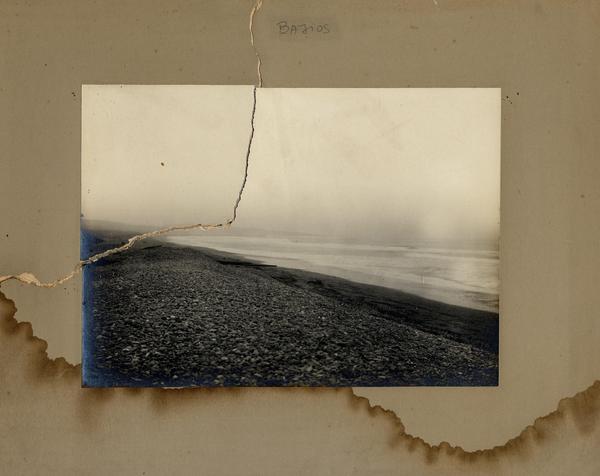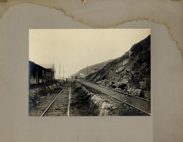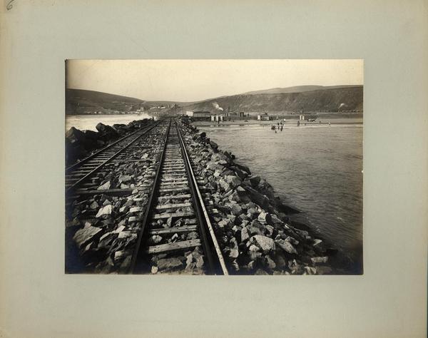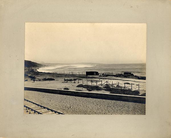 [Vista parcial de la línea férrea en la orilla del mar ] [fotografía].