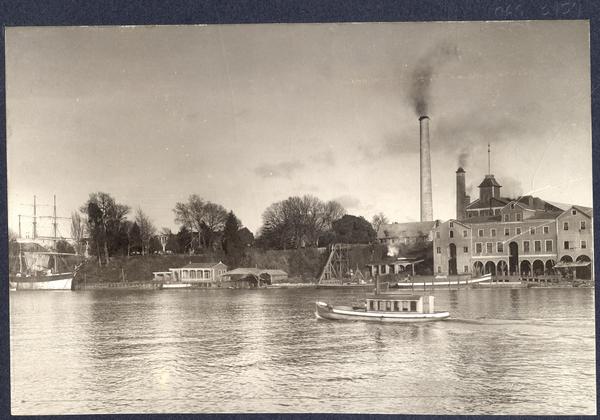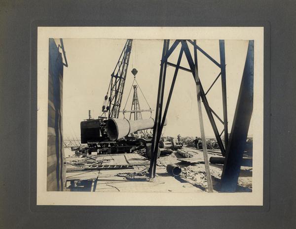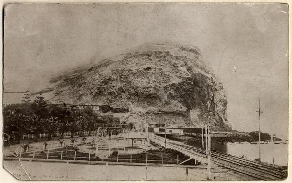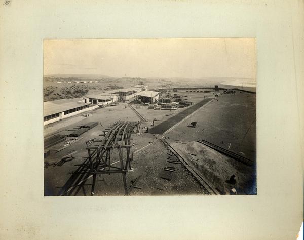 [Vista general de terminal marítimo, con vías de ferrocarriles y la maestranza] [fotografía].