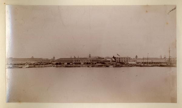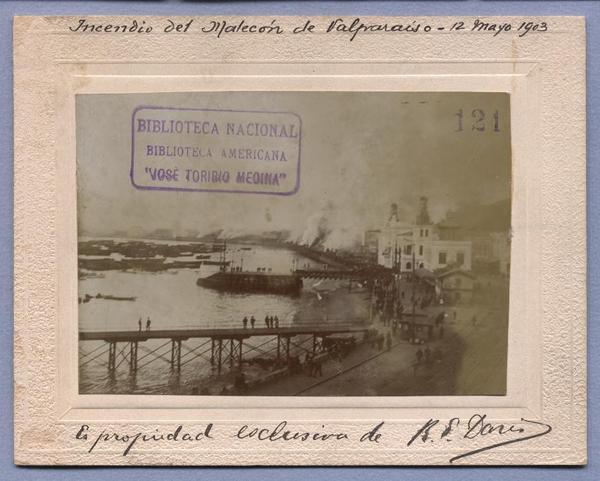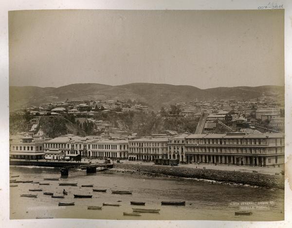 [Vista principal del muelle fiscal de Valparaíso] [fotografía] Fotografía Leblanc.