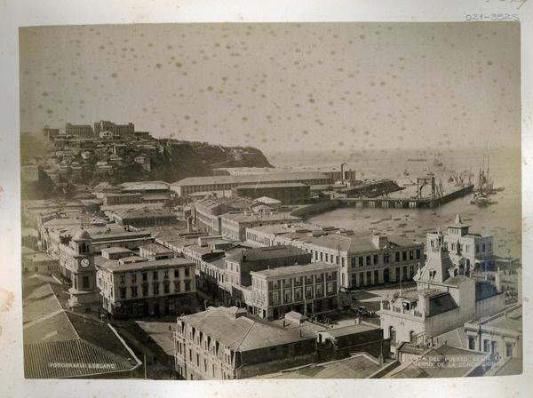 [Vista panorámica del Puerto de Valparaíso desde el Cerro de la Artillería] [fotografía] Fotografía Leblanc.