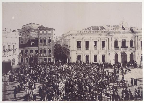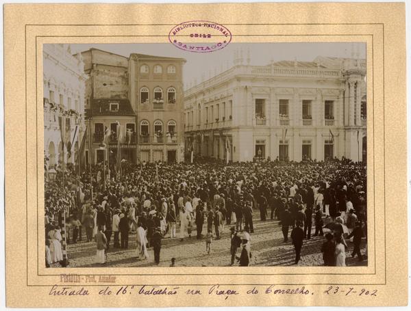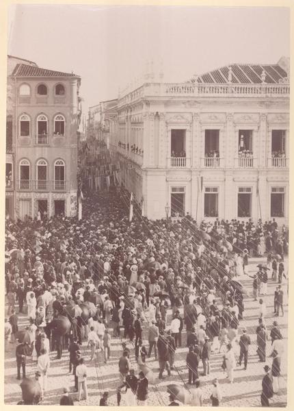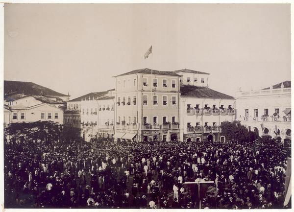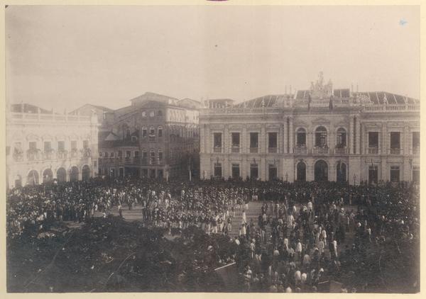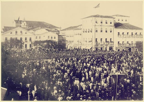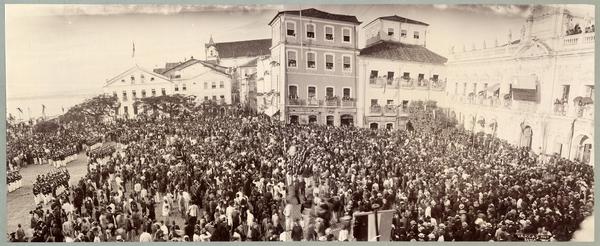 [Vista panorámica de la Plaza de Consejo en el día de los ejercicios militares, 23 de julio de 1902, Salvador de Bahía, Brasil] [fotografía] Vargas, Phot.