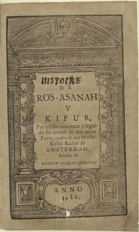Histoire de Ros-Asanah y Kipur : por estilo corriente y seguido sin volver de una a otra parte, como se uza en este Kahal Kados.