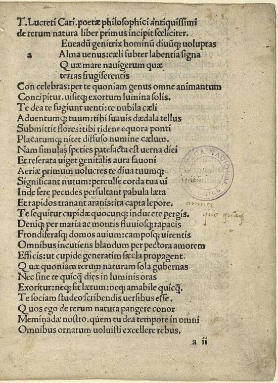 Poesía - Incunables - Poesías latinas - Epicureismo - Filosofía antigua