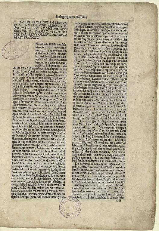 Incipit prologus in librum qui in titulatur Arbor vite crucifixe Iesu Ubertini de Casali.