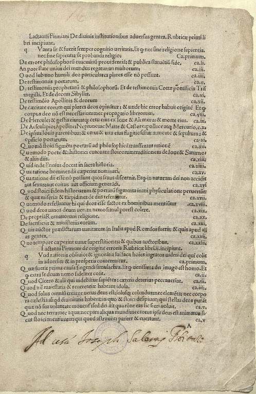 Lactantii Firmiani De divinis institutionibus adversus gentes : rubricae primi libri incipiunt Lactantius.