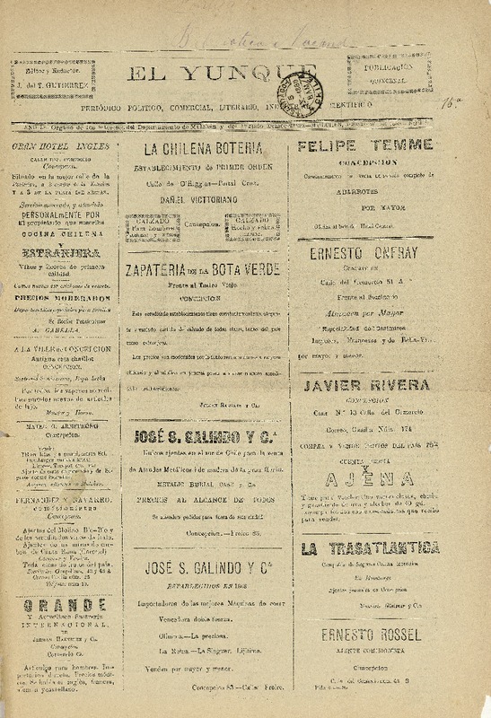 El Yunque órgano de los intereses del Departamento de Mulchen y del Partido Democrático.