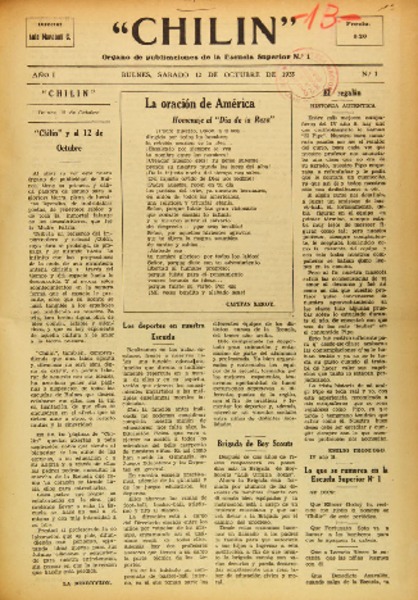 La Paz órgano de los Alumnos de la Escuela Manuel Bulnes.