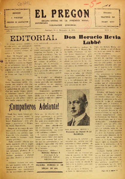 El Radical Socialista órgano oficial del Centro de Propaganda de Santiago del Partido Radical-Socialista.