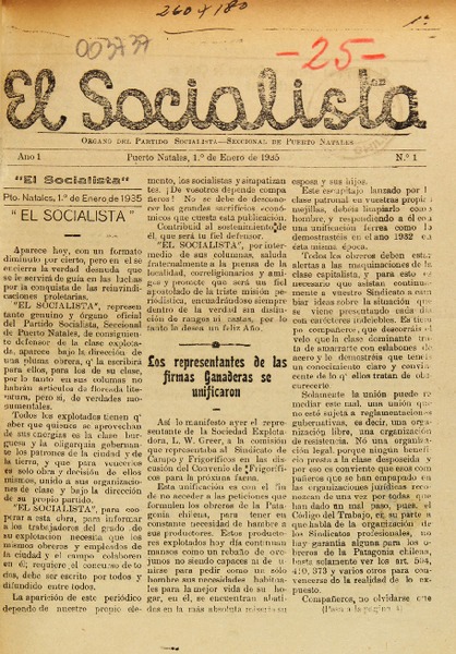 El Socialista órgano del Partido Socialista, Seccional de Puerto Natales.