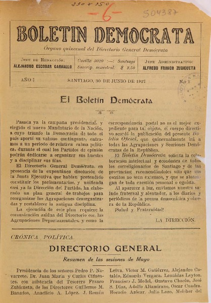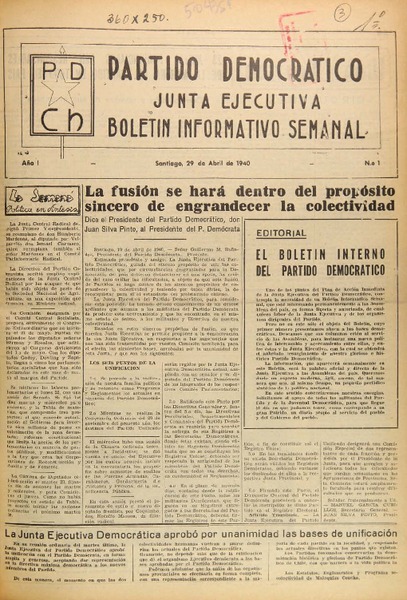 Boletín informativo semanal Partido Democrático Junta Ejecutiva.