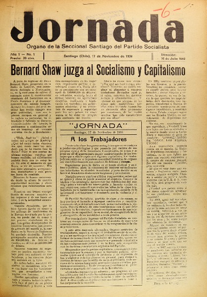 Jornada órgano de la Seccional Santiago del Partido Socialista.