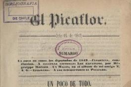 El Picaflor. [Santiago : s.n.], 1849. 1 v. ; 22 cm. .
