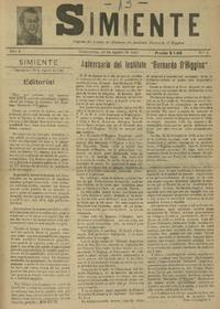 Simiente. Concepción : Centro de Alumnos del Instituto Bernardo O'Higgins, 1947-1951 (Concepción : El Esfuerzo) 3 números : ilustraciones ; 38 cm. .