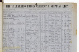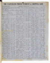 The Valparaiso prices current & shipping list. [Valparaíso] : S. Tornero, T.B. Adams, 1853 (Valparaiso : The Mercurio Office) 2 números ; 29 cm. .