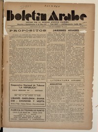 Boletín arabe / Sociedad Juventud Palestina. Santiago : La Sociedad, 1932-1948 (Santiago : Impr. El Esfuerzo) 4 v. ; 39 cm. .