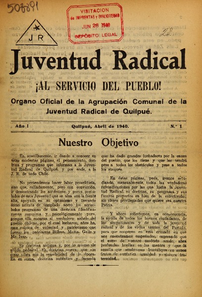 Inicio / Fondos y Colecciones / Periódicos / Autores Secundarios / Partido Radical (Chile). Juventudes