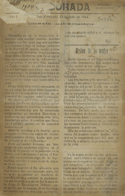 Inicio / Fondos y Colecciones / Periódicos / Autores Secundarios / Liceo de Niñas de San Fernando (Chile) 5o. Año de Humanidades