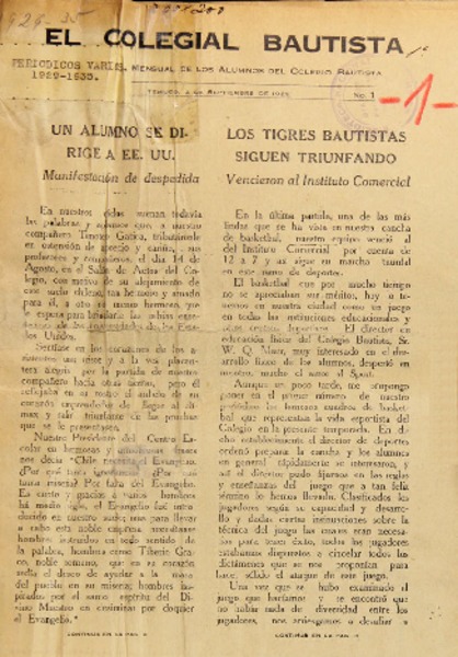 Inicio / Fondos y Colecciones / Periódicos / Autores Secundarios / Colegio Bautista (Chile) Los Alumnos