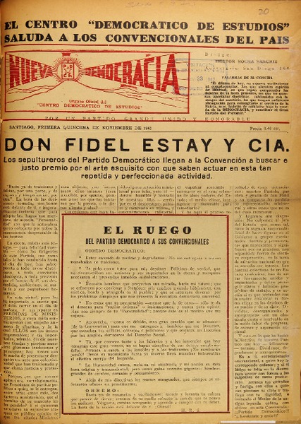 Nueva democracia órgano oficial del Centro Democrático de Estudios.
