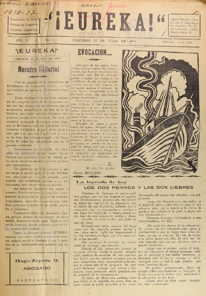 Eureka órgano oficial de la Asociación de Estudiantes de Comercio Instituto Comercial.