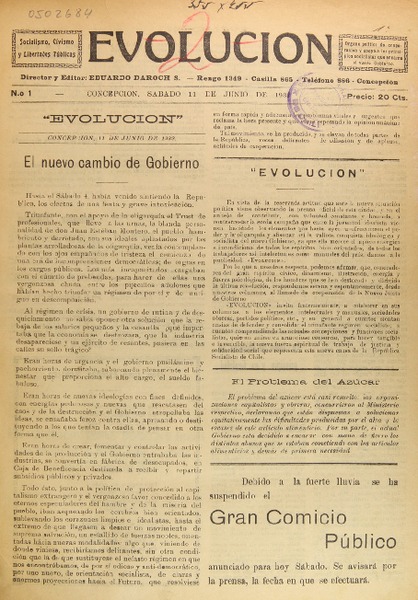 La Evolución : órgano político de cooperación y apoyo a los principios que encarna el nuevo gobierno.