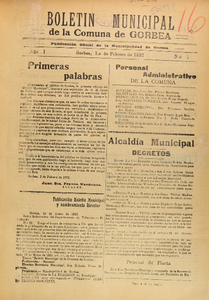 Boletín municipal de la Comuna de Gorbea publicación oficial de la Municipalidad de Gorbea.