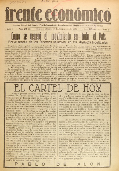 Frente económico órgano oficial del Comité Pro-mejoramiento Económico del Magisterio Primario de Cautín.
