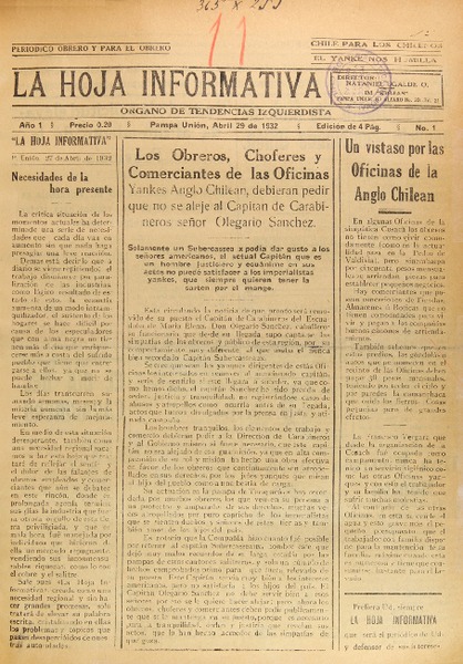 Publicaciones periódicas - Diarios chilenos - Clase trabajadora