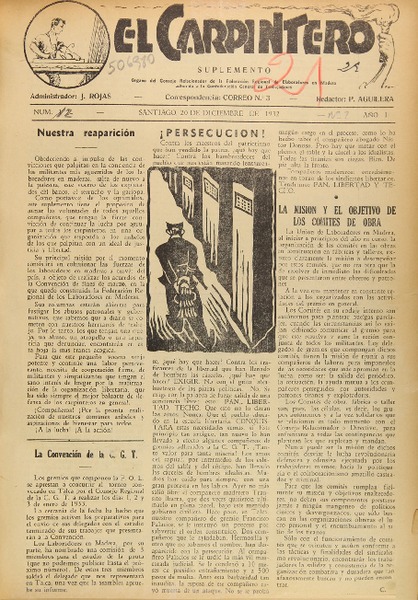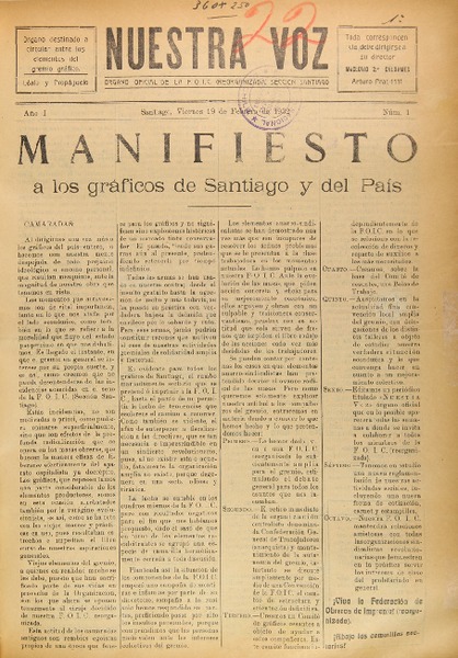 Nuestra voz órgano oficial de la F.O.I.C. (Reorganizada), Sección Santiago.