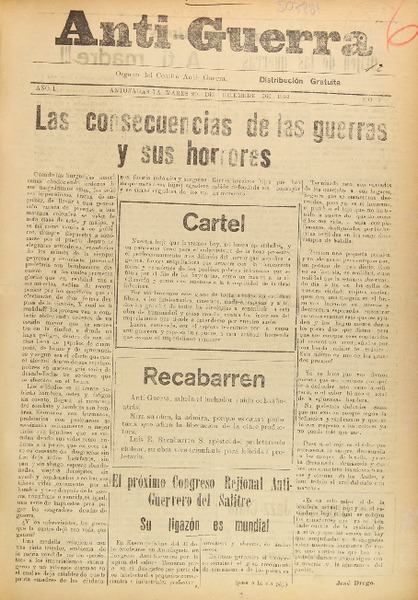 Anti-Guerra órgano del Comité Anti-Guerra.