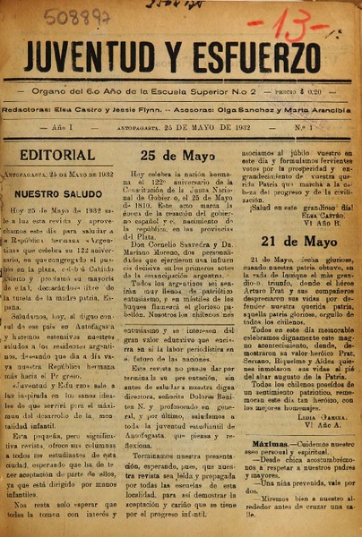 Juventud y esfuerzo órgano del 6o. Año de la Escuela Superior No.2.