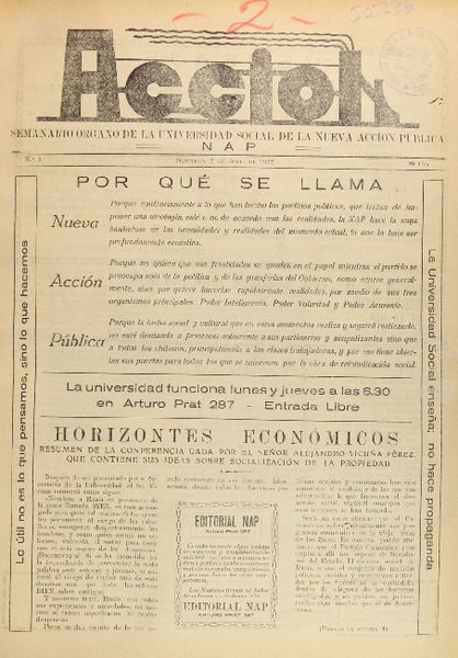 Acción órgano de la Universidad Social de la Nueva Acción Pública.