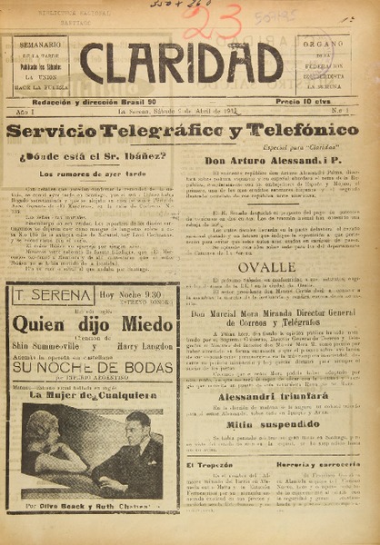 Claridad órgano de la Federación Izquerdista de La Serena.