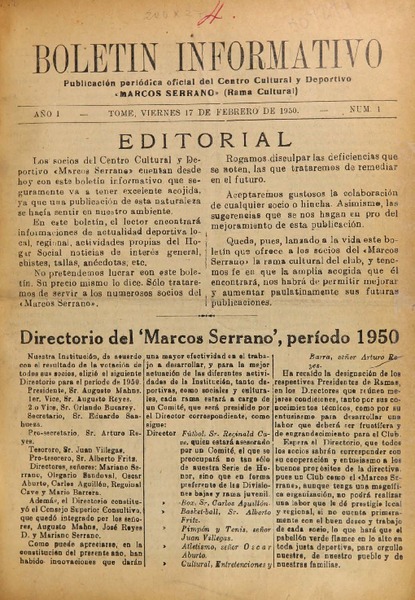 Inicio / Fondos y Colecciones / Periódicos / Autores Secundarios / Centro Cultural y Deportivo Marcos Serrano (Tomé, Chile)