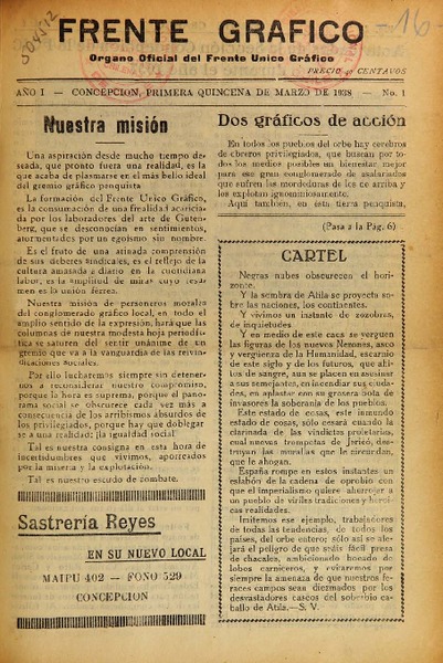 Inicio / Fondos y Colecciones / Periódicos / Autores Secundarios / Frente Unico Gráfico (Concepción, Chile)