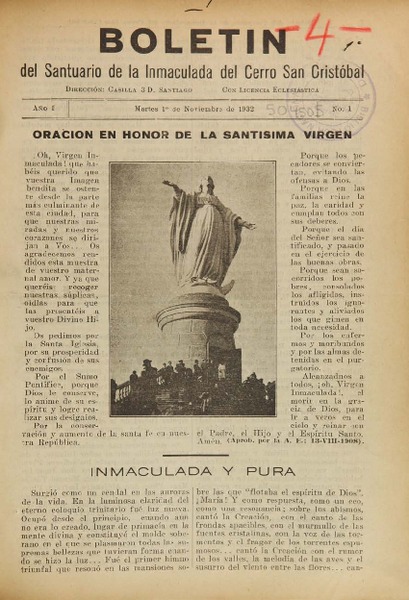 Inicio / Fondos y Colecciones / Periódicos / Autores Secundarios / Santuario de la Inmaculada Virgen del Cerro San Cristóbal (Santiago, Chile)