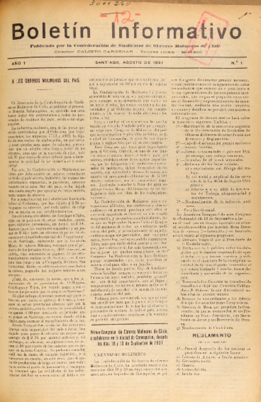 Inicio / Fondos y Colecciones / Periódicos / Autores Secundarios / Confederación de Sindicatos de Obreros Molineros (Chile)