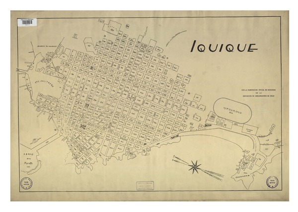 Iquique con la numeración oficial de manzanas [material cartográfico] : de la Asociación de Aseguradores de Chile.