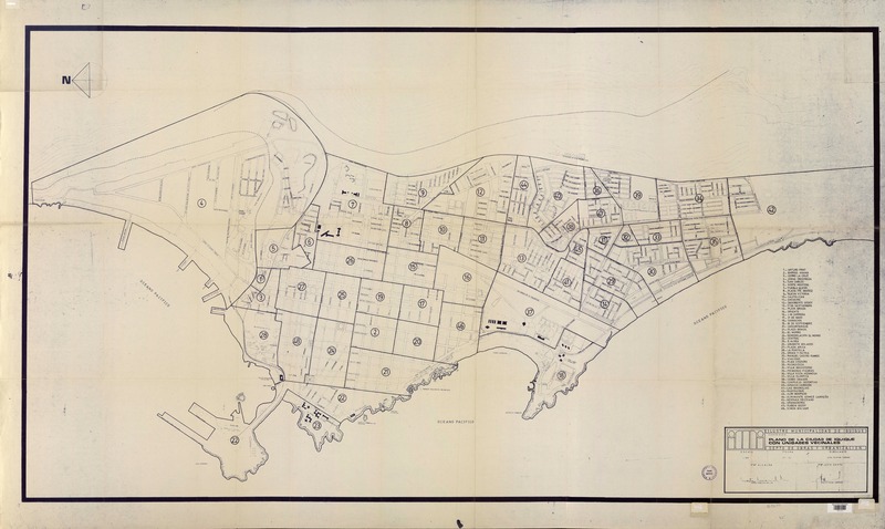 Plano de la ciudad de Iquique con unidades vecinales [material cartográfico] : Ilustre Municipalidad de Iquique, Depto. de Obras y Urbanización.