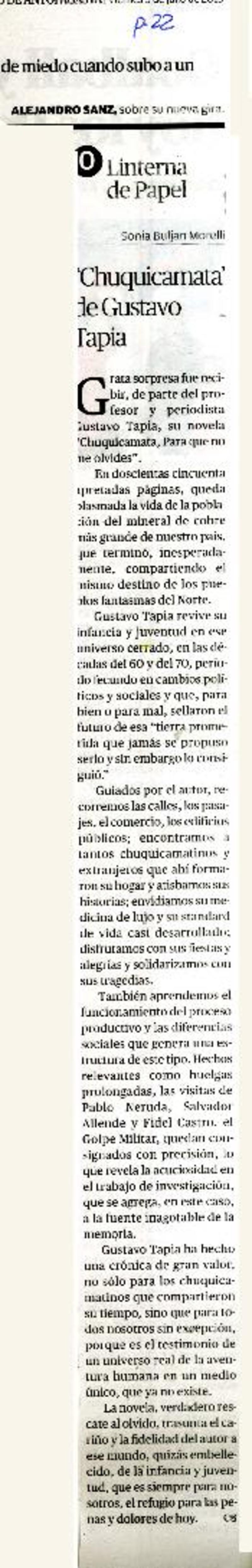 "Chuquicamata" de Gustavo Tapia [artículo] Sonia Buljan Morelli.
