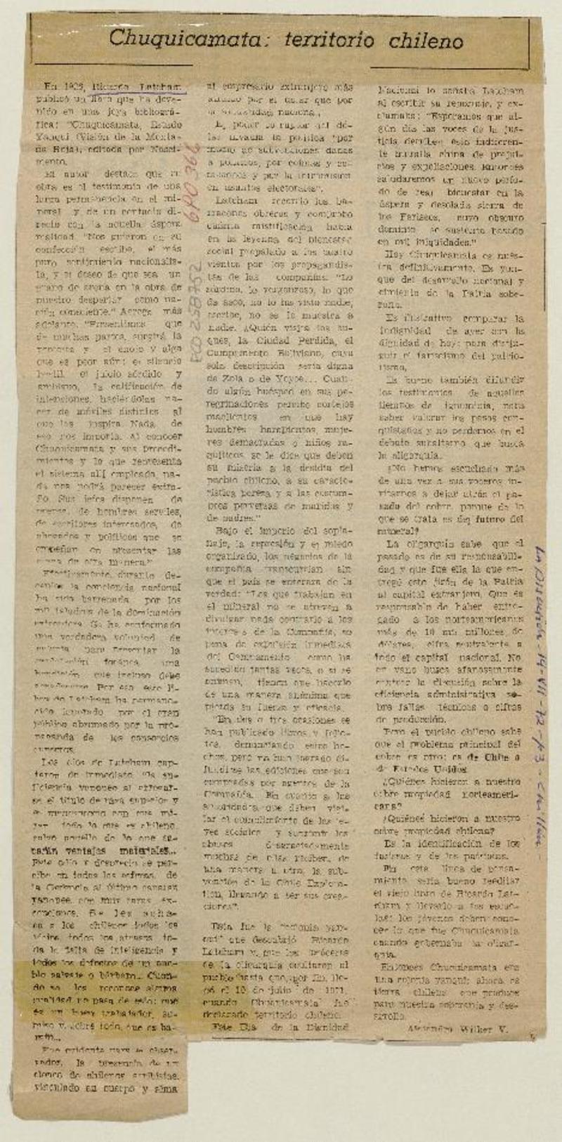 Chuquicamata: territorio chileno [artículo] Alejandro Witker.